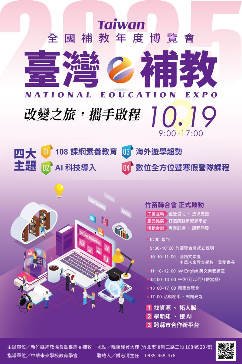 補教的未來正在改變! 竹竹苗三地補教協會即將於【10月19日 教育博覽會】 正式啟動《竹竹苗補教聯合會》!