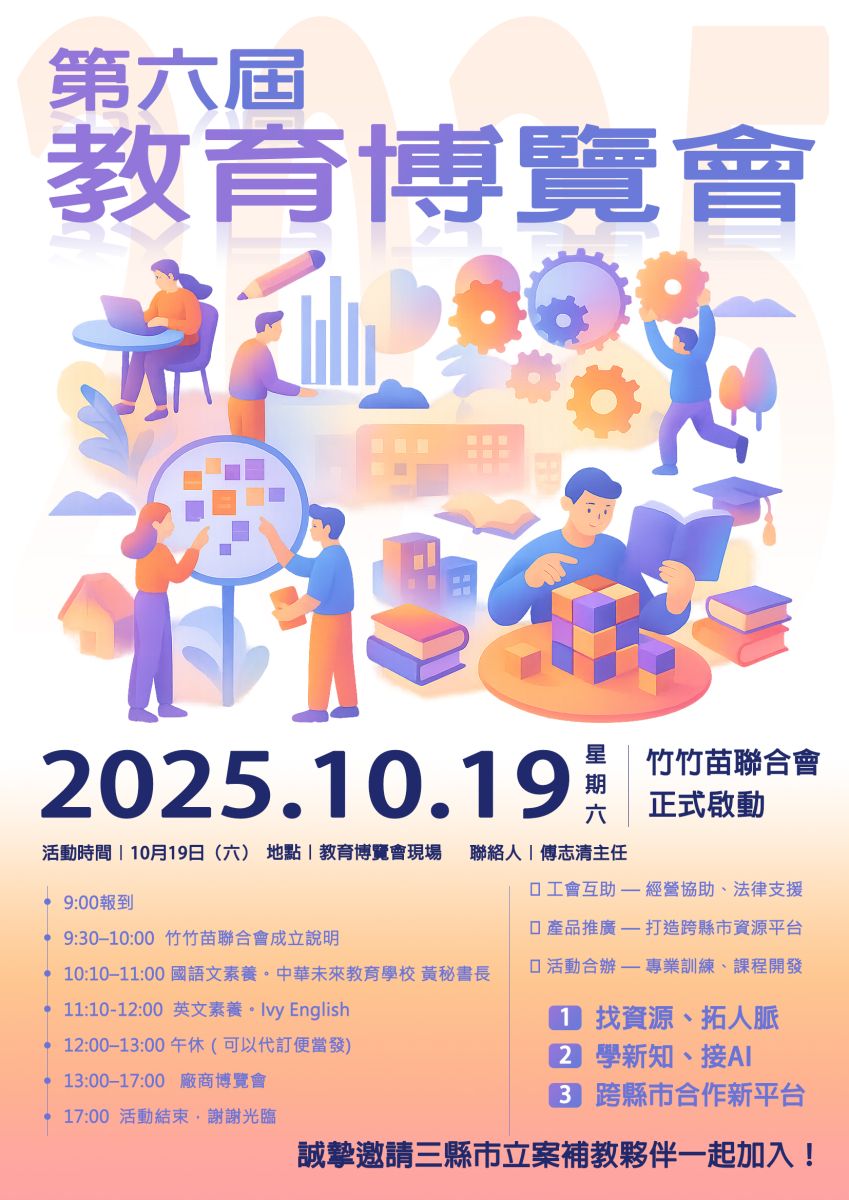 因此,竹竹苗聯合會 將於 10月19日第六屆教育博覽會 正式成立!🎉🎉